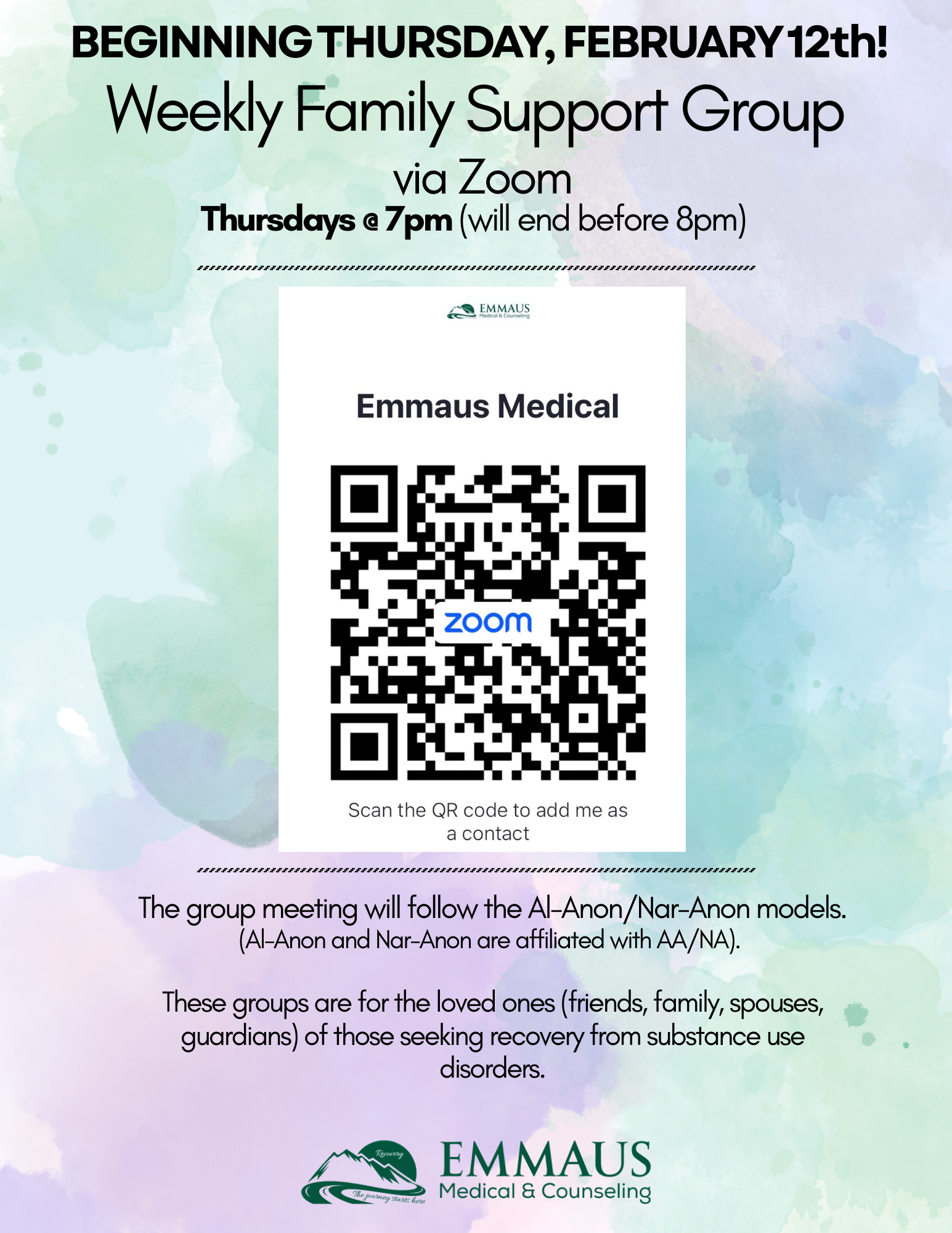 Emmaus Medicals Weekly Family Support Group Via Zoom